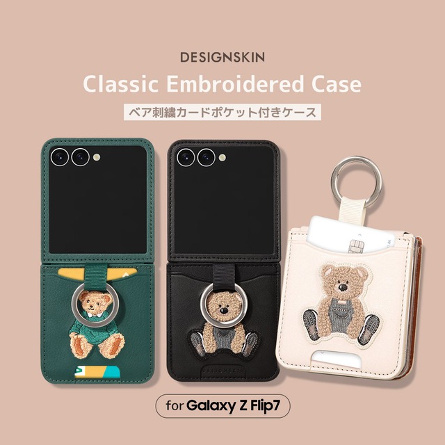 国内正規品 Design Skin Galaxy Z Flip7 ベア 刺繍 カードポケット付き ケース カバー カード2枚収納 デザインスキン DSK28046GZFP7 DSK28047GZFP7 DSK28048GZFP7