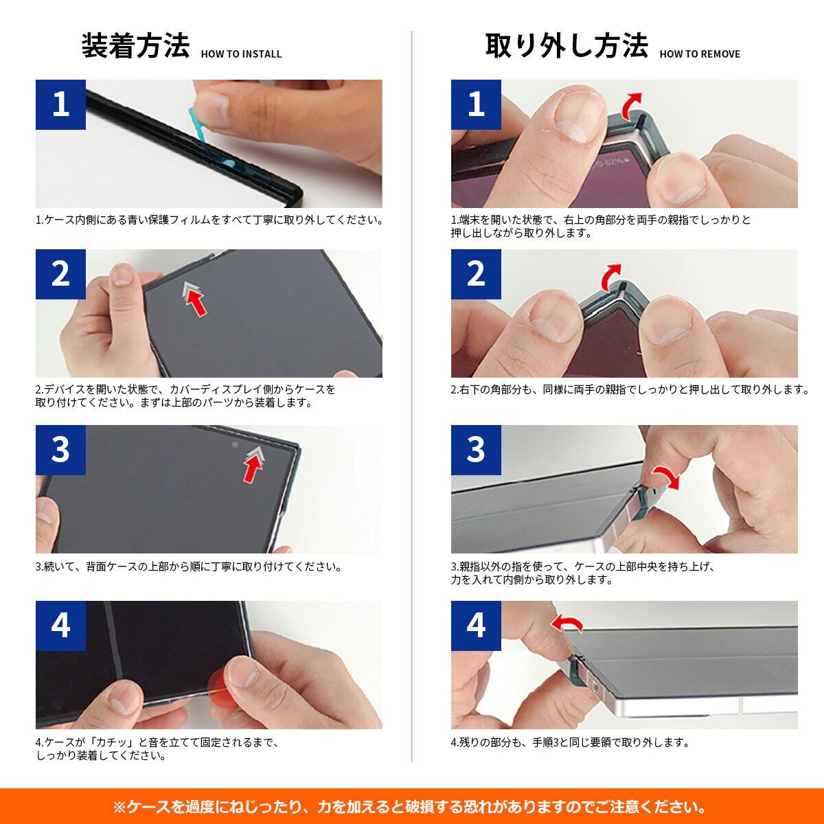 ケースを過度にねじったり、力を加えると破損する恐れがありますのでご注意ください。