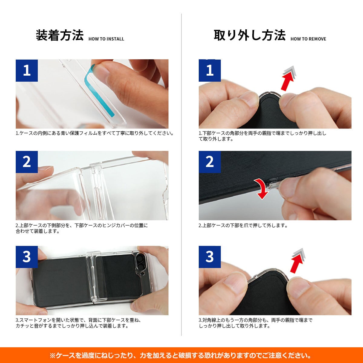 3.スマートフォンを開いた状態で、背面に下部ケースを重ね、カチッと音がするまでしっかり押し込んで装着します。