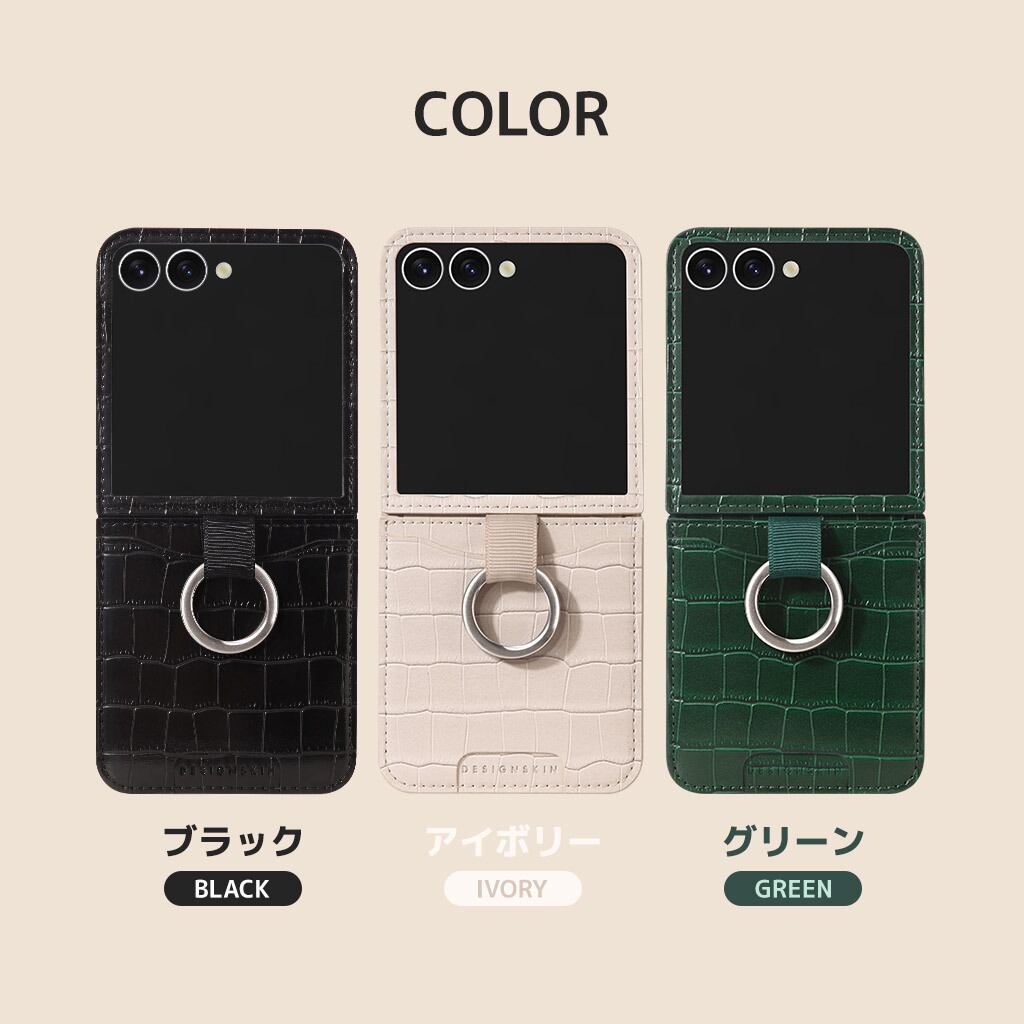 国内正規品 Design Skin Galaxy Z Flip7 カードポケット付き クロコ柄 本革 ケース カバー メタルリング付き デザインスキン