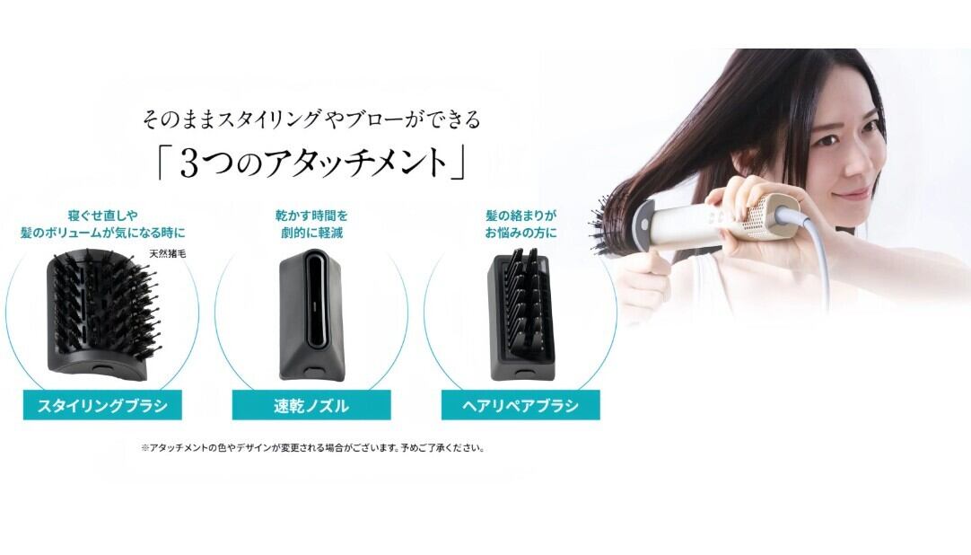 そのままスタイリングやブローができる「3つのアタッチメント」