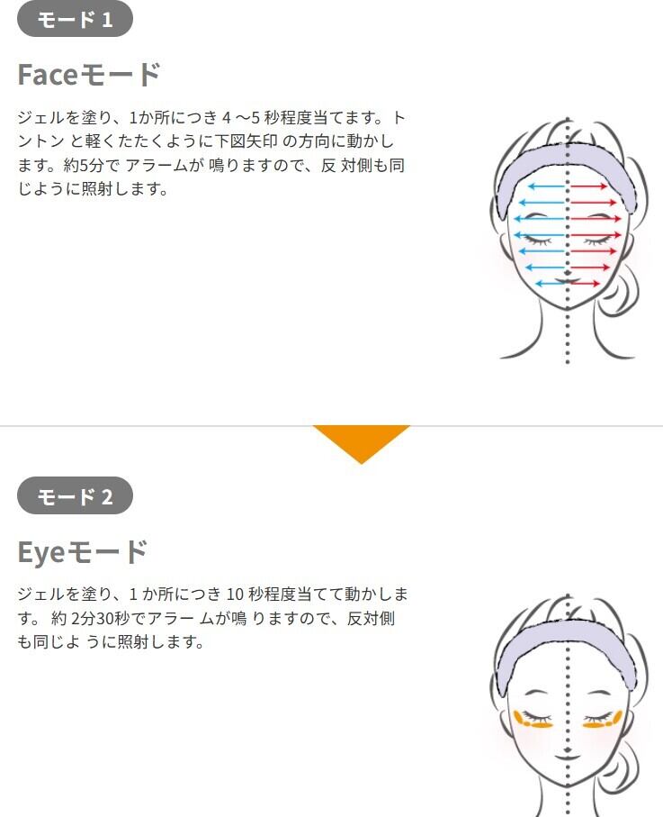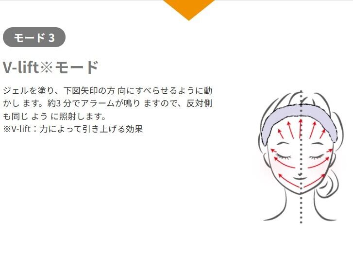 モード:顔  (10分間)  / 目元 (5分間) / V-LIFT (6分間)