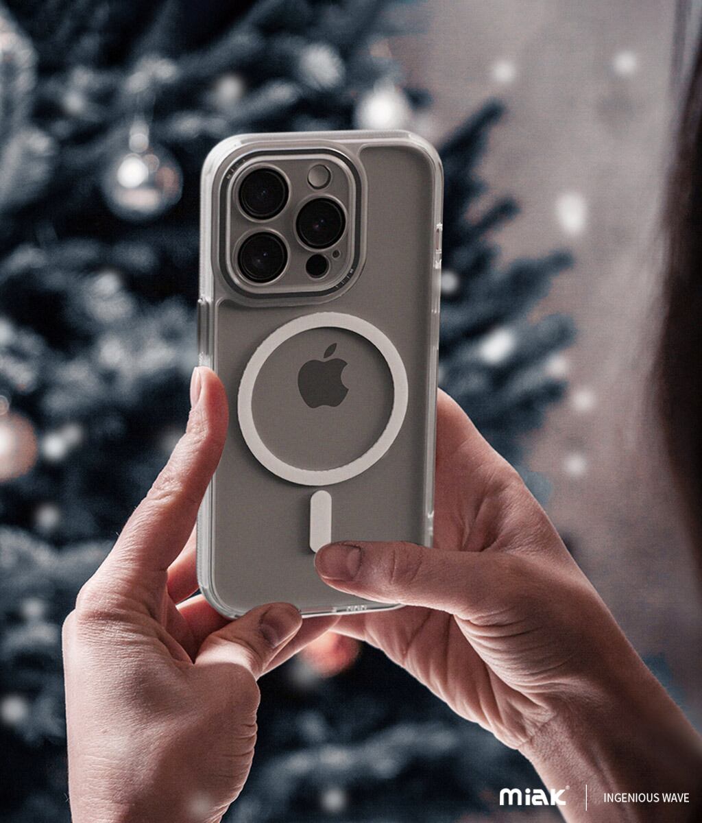 miakの「レンズガード一体型MagSafe対応クリアケース」は,カメラレンズガードが付いた、MagSafe対応のクリアケースです。