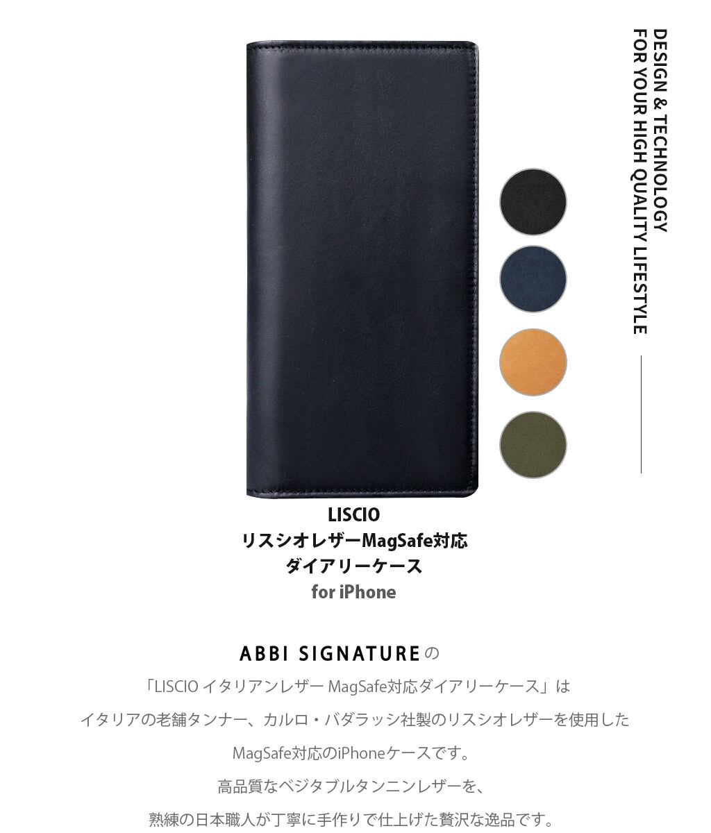 ABBI SIGNATUREの「LISCIO イタリアンレザー MagSafe対応ダイアリーケース」は、イタリアの老舗タンナー、カルロ・バダラッシ社製のリスシオレザーを使用したMagSafe対応のiPhoneケースです。高品質なベジタブルタンニンレザーを、熟練の日本職人が丁寧に手作りで仕上げた贅沢な逸品です。
