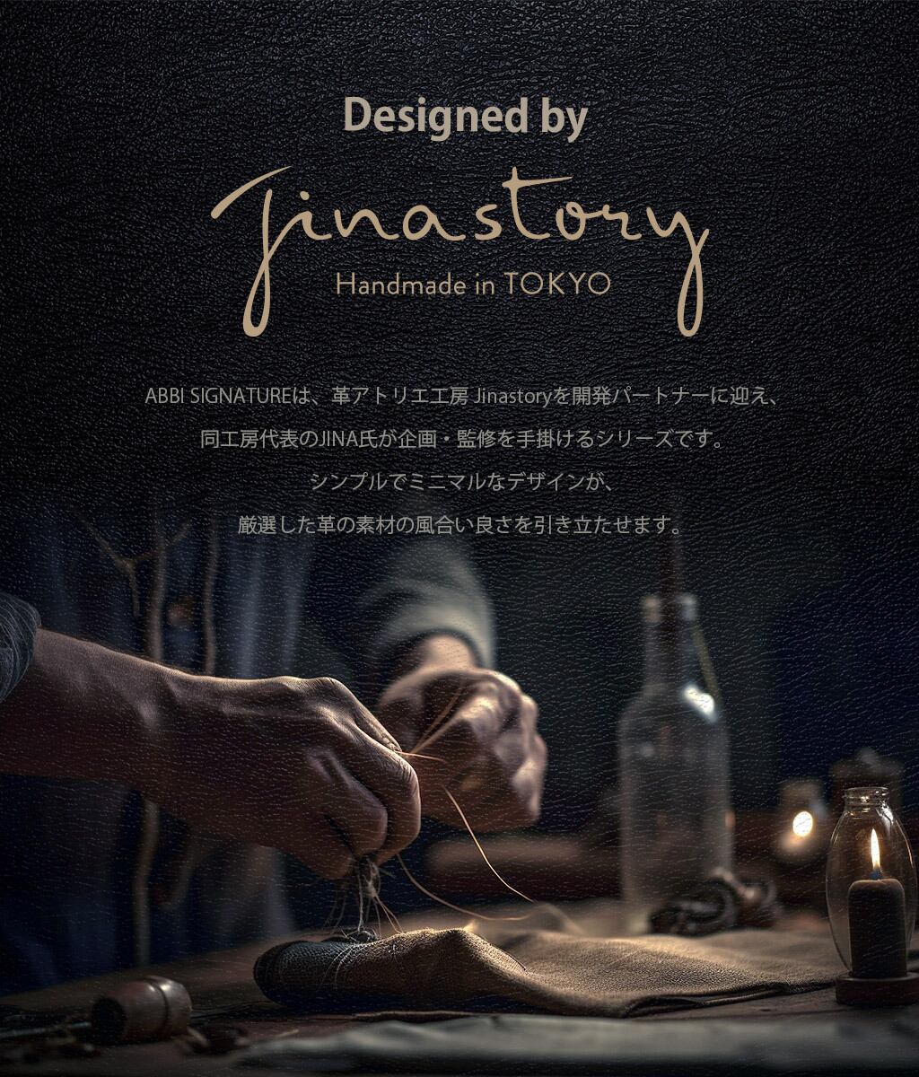ABBI SIGNATUREは、革アトリエ工房 Jinastoryを開発パートナーに迎え、同工房代表のJINA氏が企画・監修を手掛けるシリーズです。シンプルでミニマルなデザインが、厳選した革の素材の風合い良さを引き立たせます。