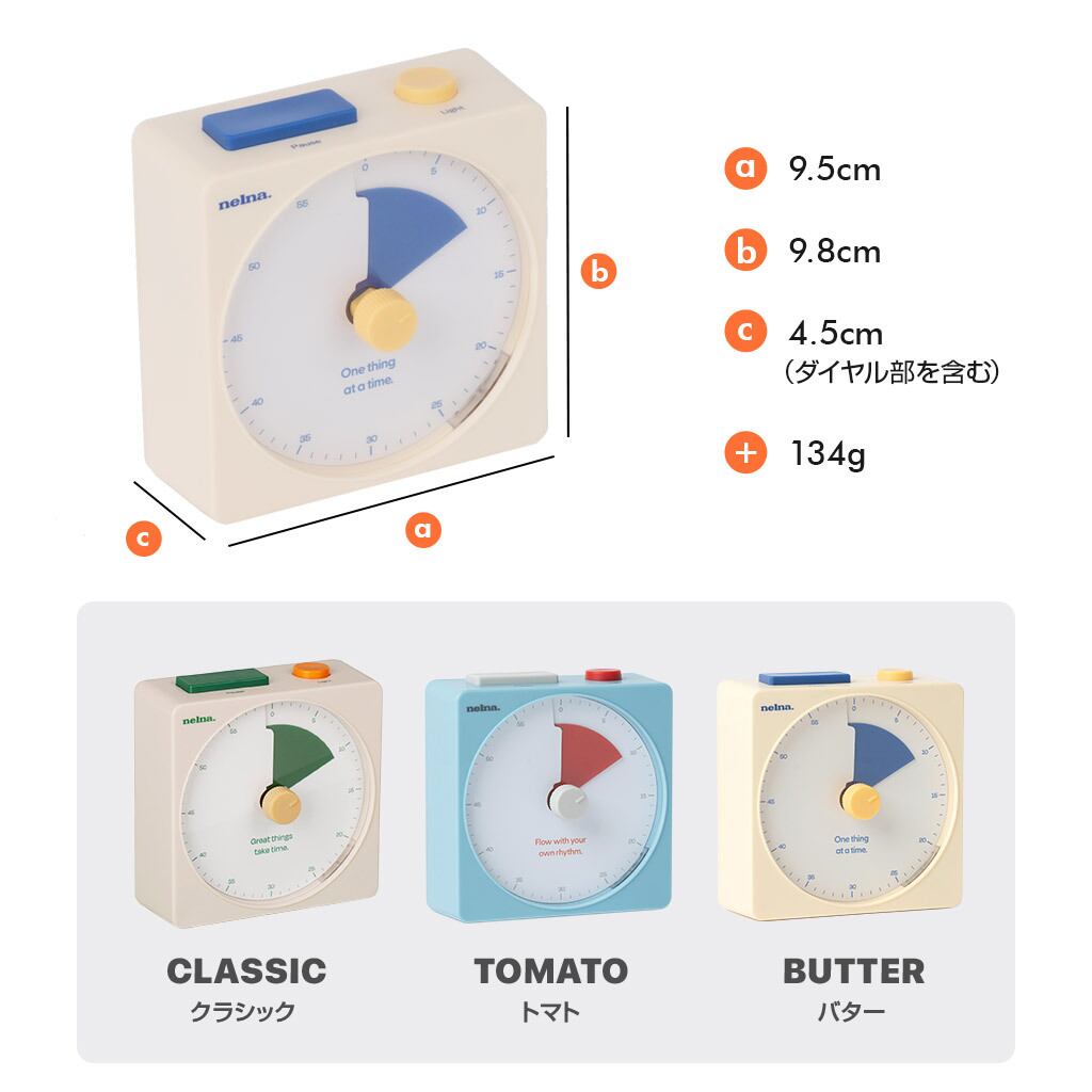 国内正規品 Nelna フォーカスオン タイマー 見える集中タイマー 残り時間(最大60分)を色で伝えるアナログ式タイマー カチカチ音のしない静音設計 ネルナ NA-TMCL NA-TMPL NA-TMPK NA-TMBL NA-TMTM NA-TMBT