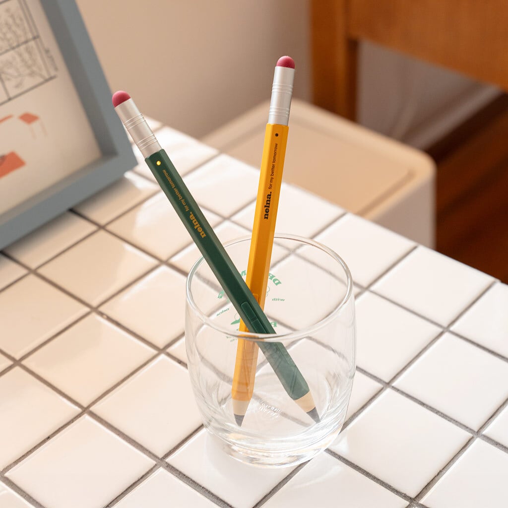 Nelna Pencilは、六角形の鉛筆デザインと人間工学設計を融合させたiPad用次世代デジタルペンシルです。3つの物理ボタンで最大9種の操作ができ、Goodnotesなどの主要アプリに対応します。消しゴム型タッチペンを備え、マグネット吸着ワイヤレス充電や隠しUSB-Cポートでの有線充電にも対応しています。