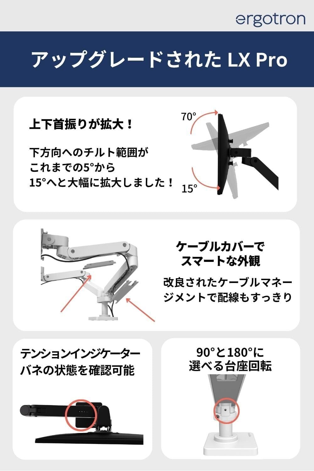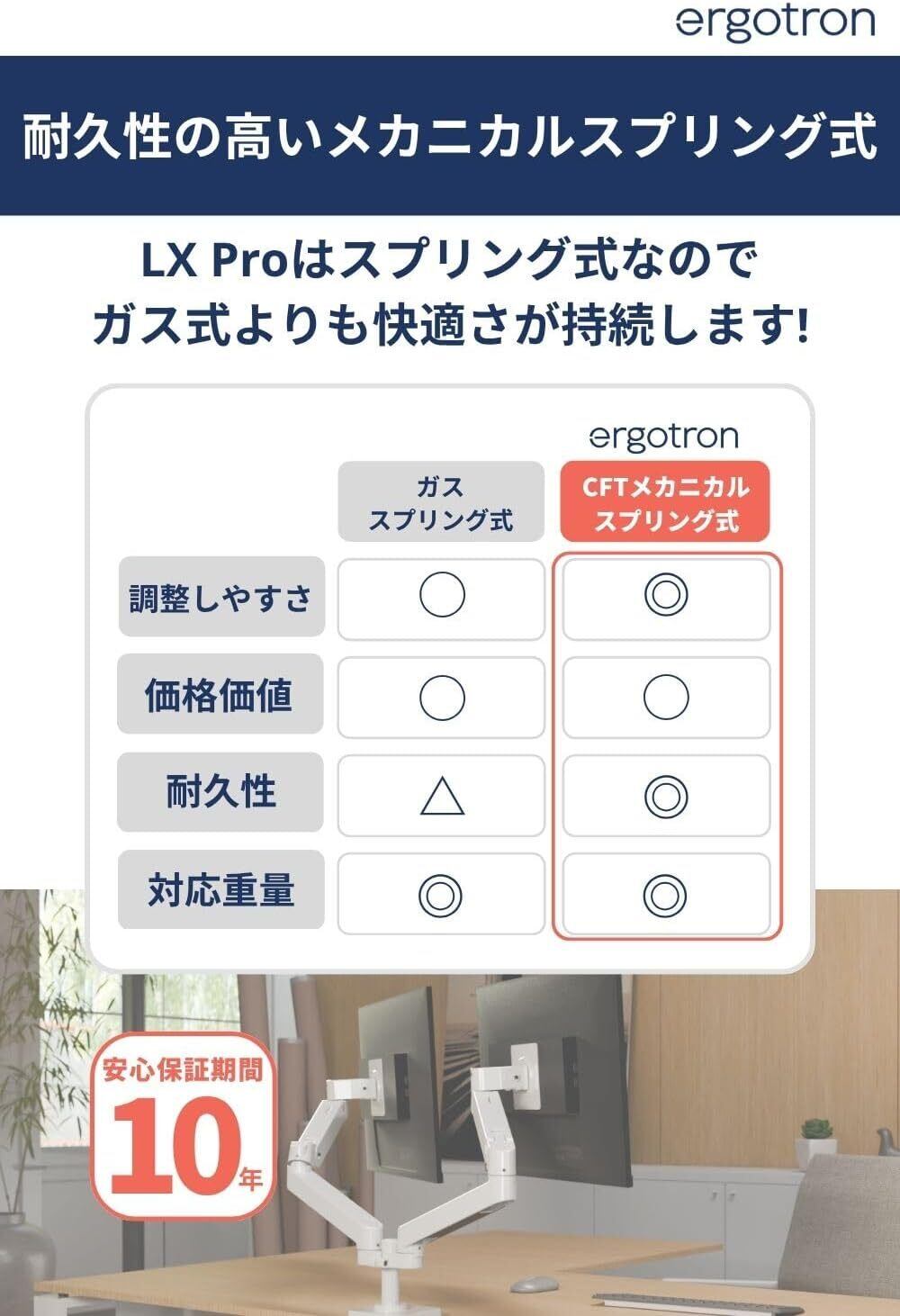 国内正規品 ERGOTRON LX PRO デスクマウント モニターアーム デュアル 横型 2画面 27インチ(3.6~18.1kg)まで対応 VESA規格対応 エルゴトロン 45-686-290 45-686-292