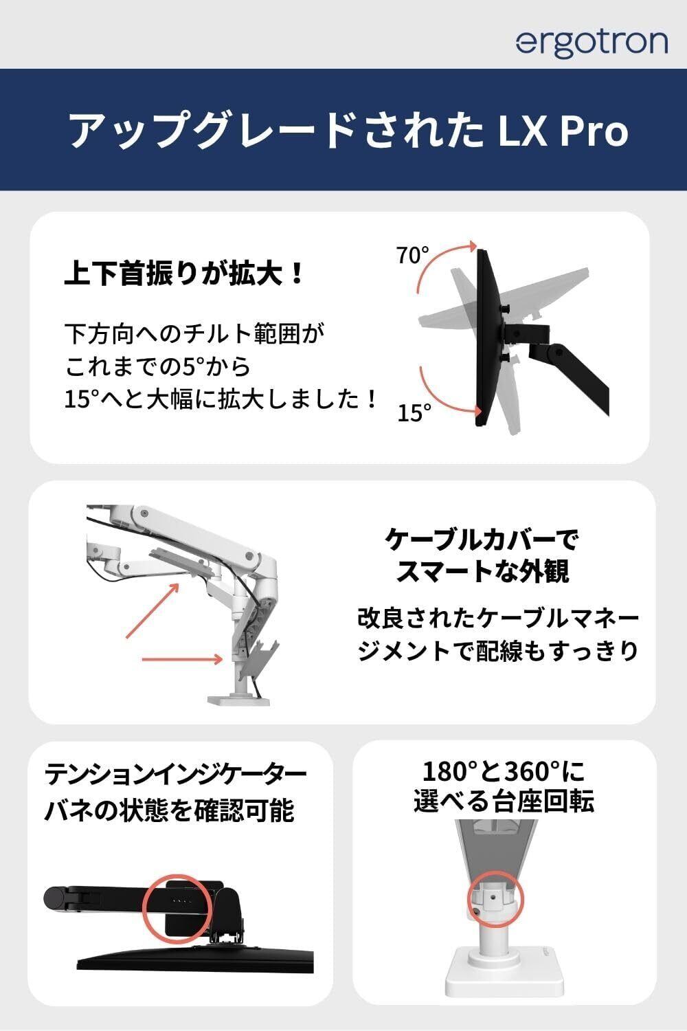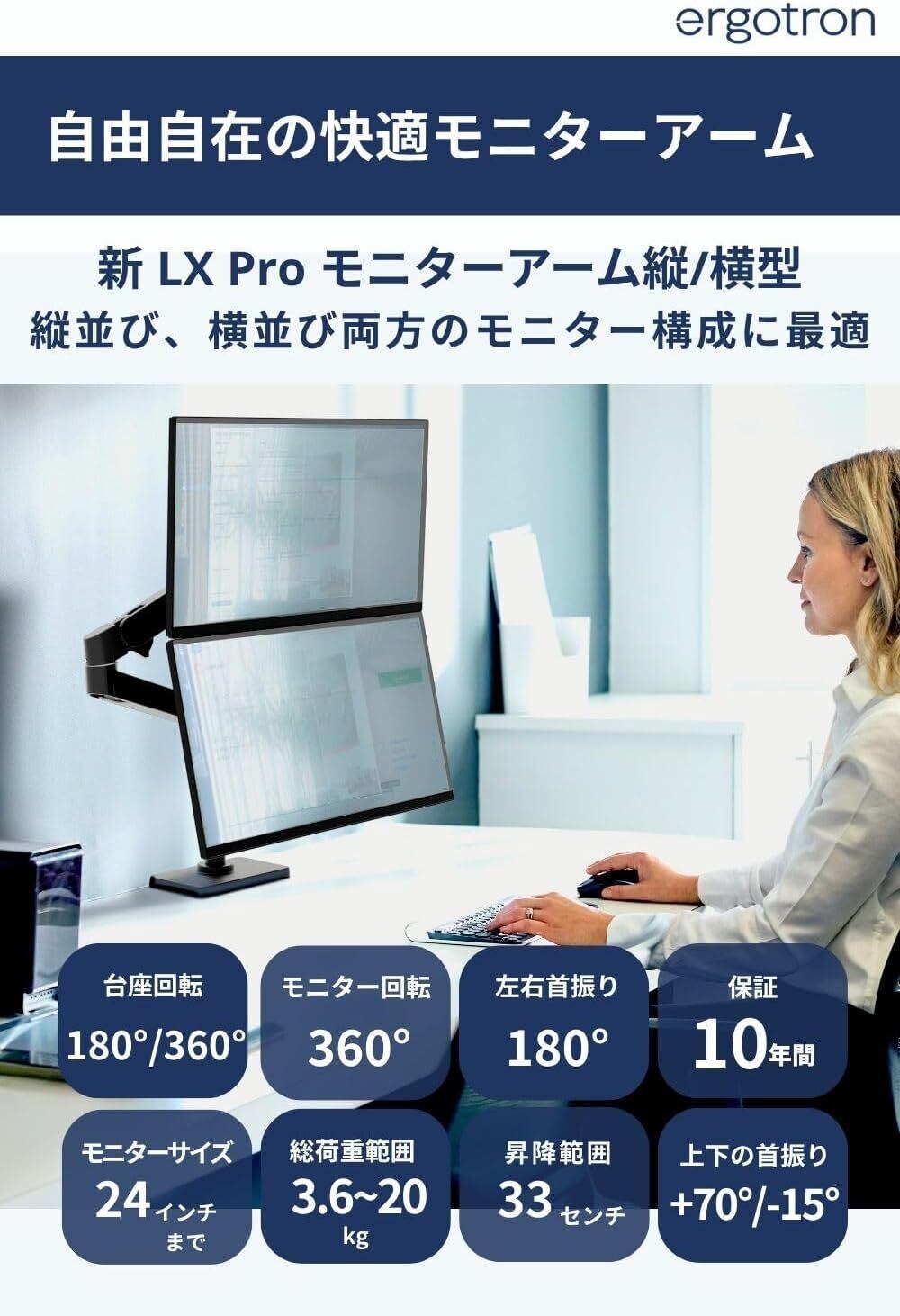 国内正規品 ERGOTRON LX PRO デスクマウント モニターアーム デュアル 横型 2画面 24インチ(3.6~20kg)まで対応 VESA規格対応 エルゴトロン 45-690-290 45-690-292