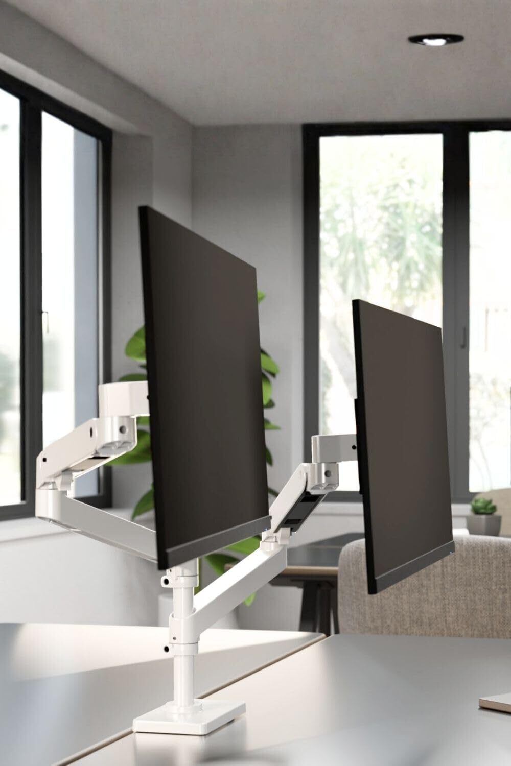 ●【多くのモニターをサポート】従来のLXデュアル縦/横型より軽いモニターを設置できます。24インチまで、1モニター1.8kgから10kgまで/総重量3.6kgから20kgまでのモニターに対応、VESA 100x100mm、75x75mm。