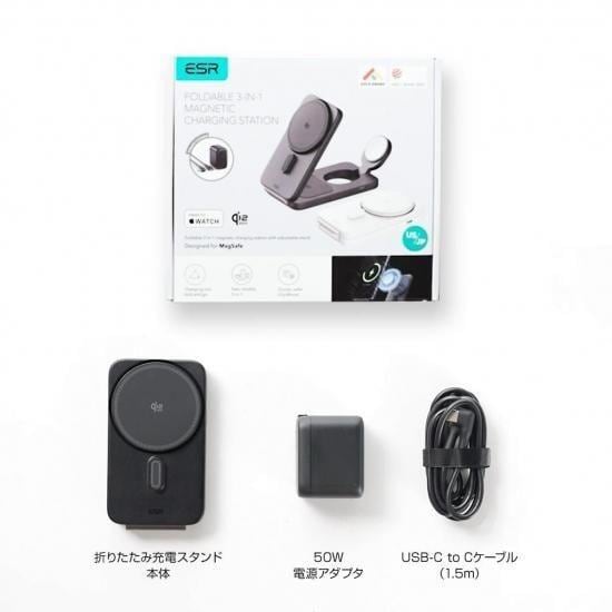 ・構成品:3in1折りたたみ充電スタンド、USB-C to Cケーブル(1.5m)、50Wアダプター、取扱説明書
