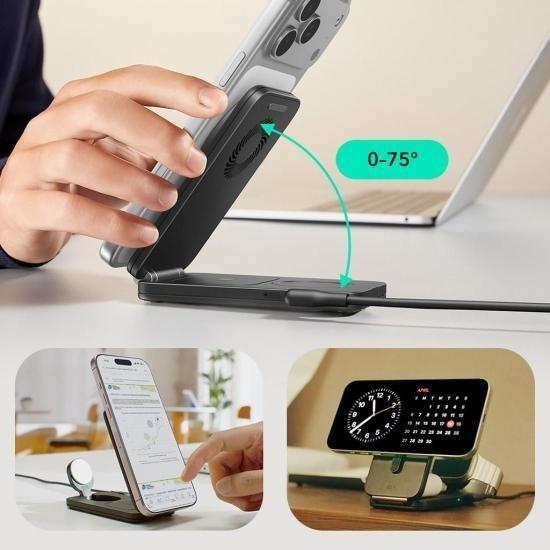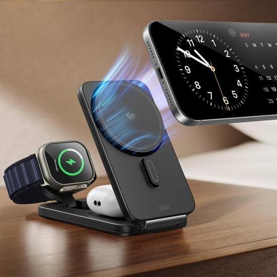 国内正規品 ESR Qi2.2 25W認証 3in1マグネット式折りたたみ充電ステーション CryoBoost冷却技術で発熱を抑制 Qi2搭載スマートフォンの充電にも対応 ES28337
