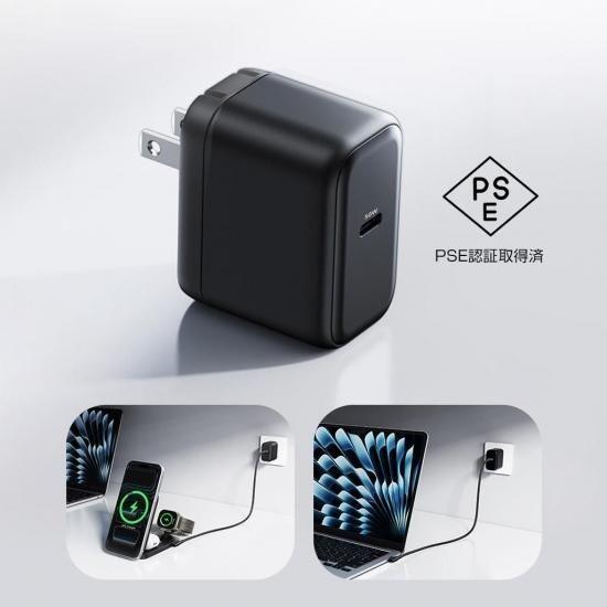 PSE認証取得済みの最適な最大出力50W充電アダプタと、急速充電対応のUSB-C to C充電ケーブルが付属しています。