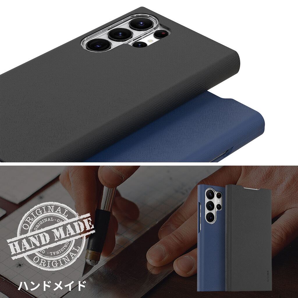 ポリカーボネート素材のベースにPUレザーを張り込んだカバーは、保護力が強く、落下時の端末への衝撃を最小限に抑えます。