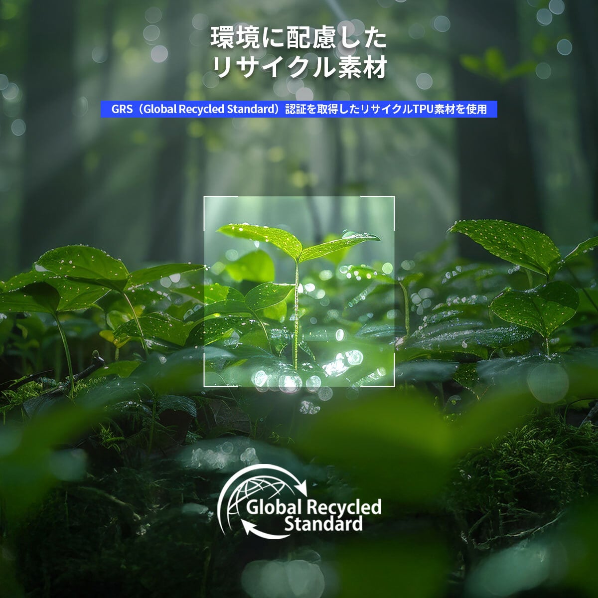 GRS(Global Recycled Standard)認証を取得したリサイクルTPU素材を使用し、地球環境保護に貢献しています。