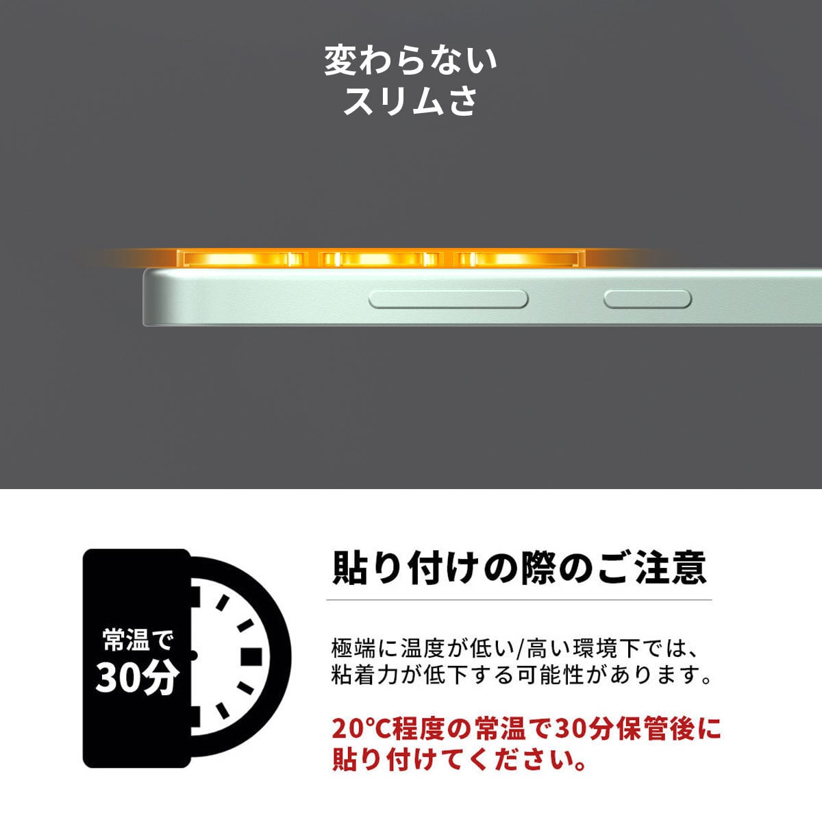 カメラレンズ全体をカバーするフルカバー設計を採用。レンズやセンサーの配置を考慮し、撮影機能に配慮したデザインです。