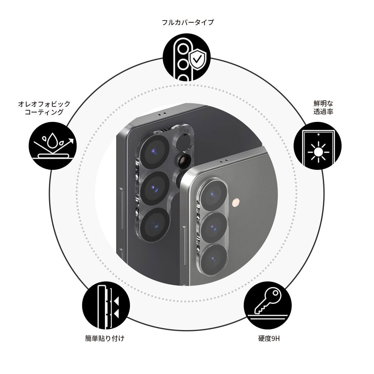 arareeの「CORE CM カメラ専用強化ガラスフィルム」は、透過率の高い強化ガラスがカメラ部をワンパーツで保護する、フルカバータイプのカメラレンズ専用フィルムです。