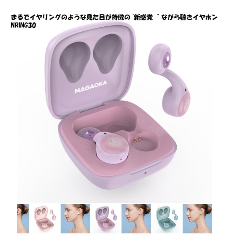NAGAOKA ナガオカ Bluetooth5.3対応 NRING30 まるでイヤリングのような見た目が特徴の "新感覚“ ながら聴きワイヤレスイヤホン NRING30WBD NRING30NPK NRING30BPR NRING30PBL NRING30ABE NRING30PBK NRING30PGN