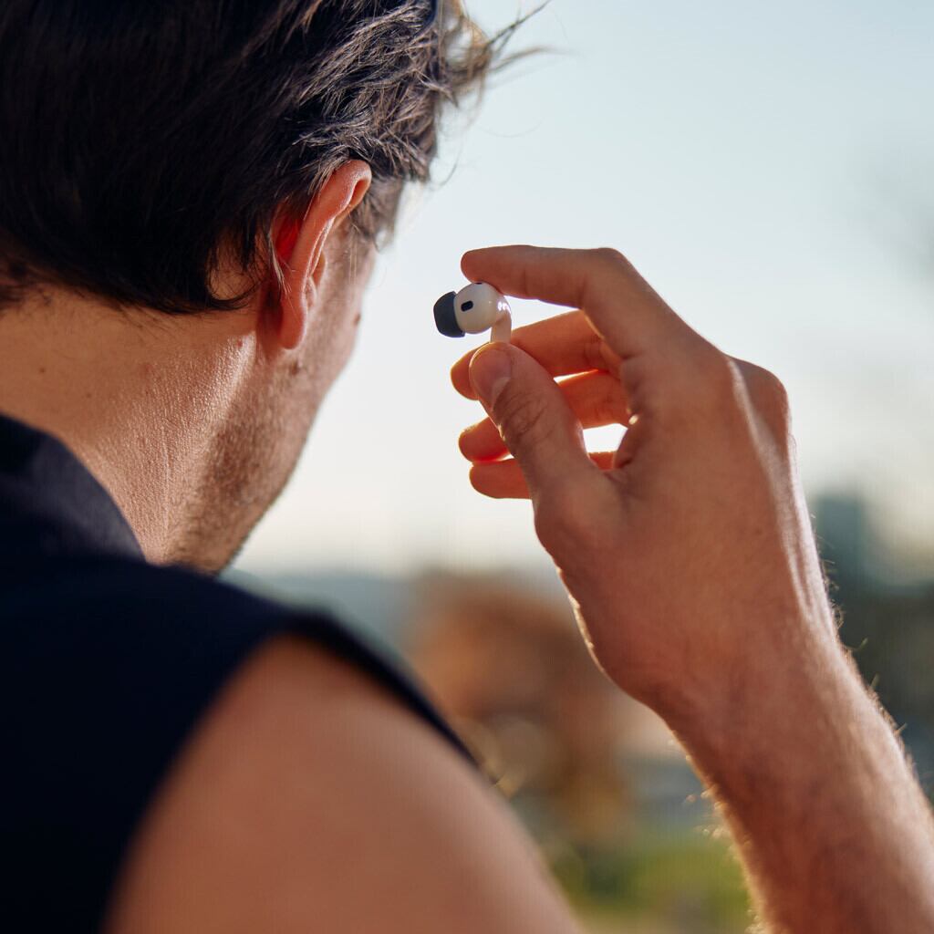 イヤーチップ表面に施されたセキュアグリップコーティングが、イヤーチップをしっかりと耳にフィットさせます。ワークアウトなどの激しい動きでも外れにくく、長時間使用の際でも安定して使用できます。