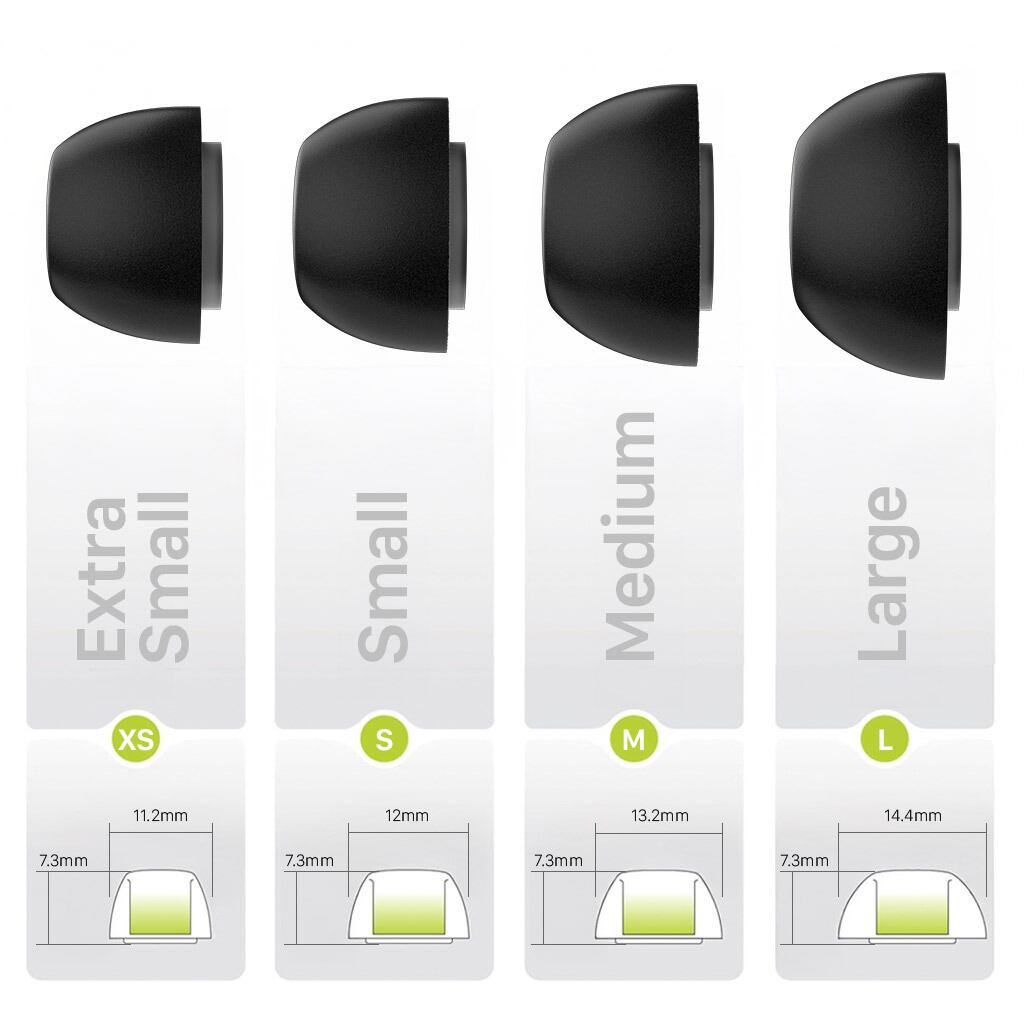 XS/S/M/Lサイズを各1ペアずつ含むセットと、同サイズのイヤーピースが4ペア入った各セットをご用意しています。同サイズセットは、XS/S/M/Lそれぞれからお選びいただけます。