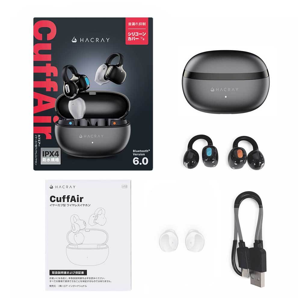5月上旬発売 国内正規品 Hacray CuffAir Bluetooth6.0 2台同時接続 マルチポイント対応 イヤーカフ型 オープンイヤー 完全ワイヤレス イヤホン ハクライ HR-OE01MB