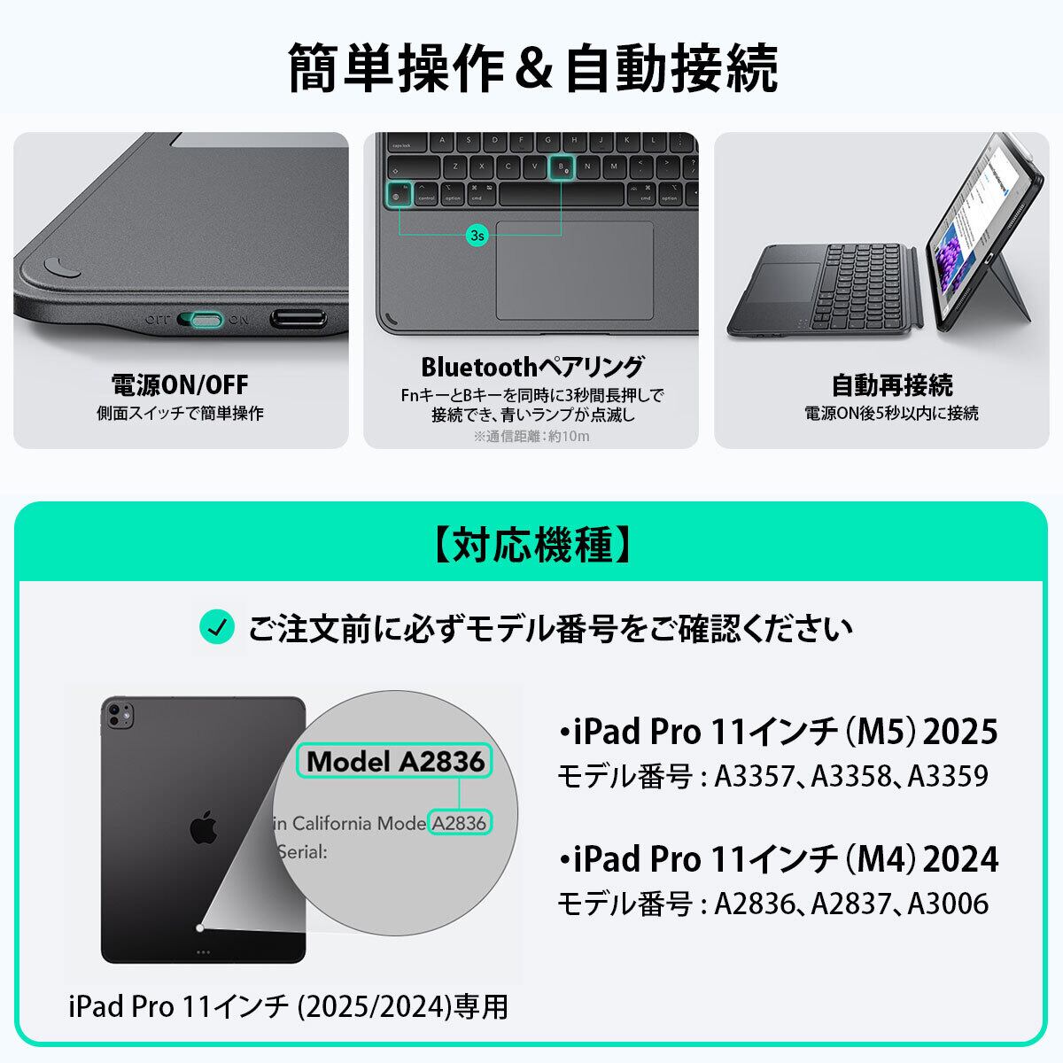 7月上旬発送予定 国内正規品 ESR SHIFT 着脱式キーボードケース for iPad Pro 11インチ (M5/M4)Bluetoothケース Apple Pencil収納 ES28488