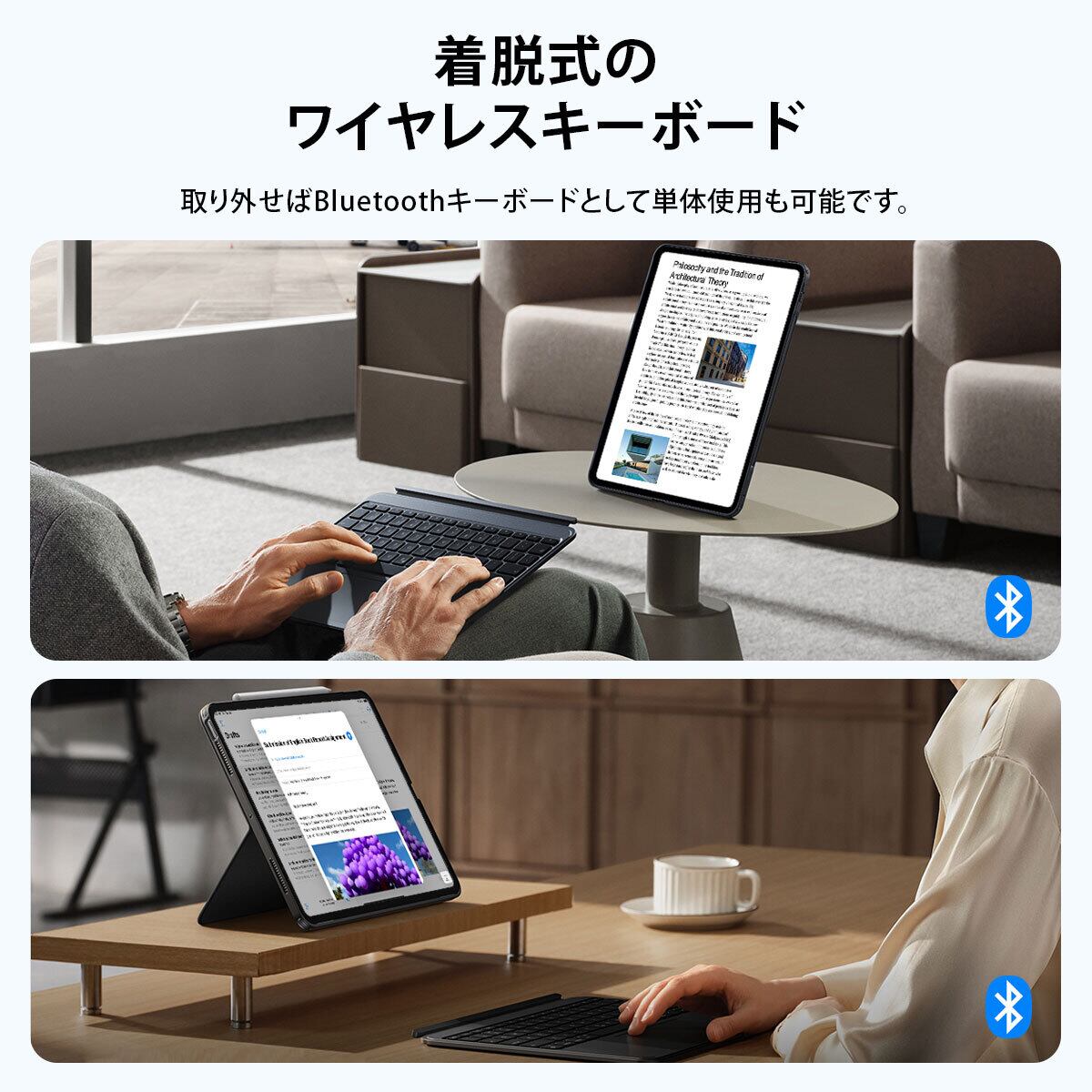 強力なマグネットにより、キーボードの着脱がスムーズ。取り外せばBluetoothキーボードとして単体使用も可能です。読書や動画視聴、スケッチ時にはタブレットモードへ簡単に切り替えられます。