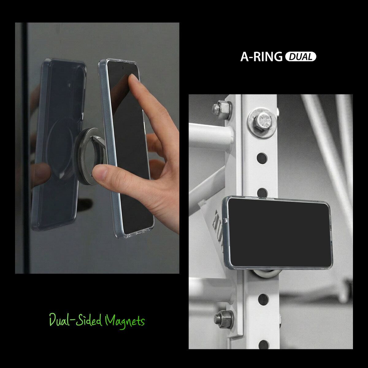 araree「A-RING DUAL」は、両面マグネット構造を採用した多機能スマホリングです。スマートフォンへの装着はもちろん、金属面への固定にも対応。スタンドとしても使える便利なアイテムです。MagSafe対応で着脱もスムーズ。薄型設計で持ち運びやすく、日常をより快適にします。