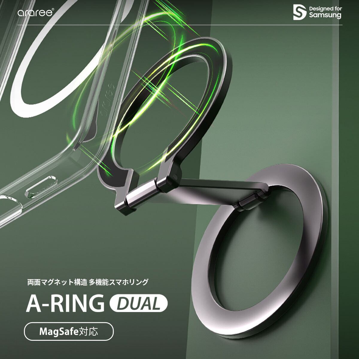 国内正規品 araree A-RING DUAL ガンメタル [MagSafe対応 スマホリング スタンド グリップxスタンドxマウント AR28482