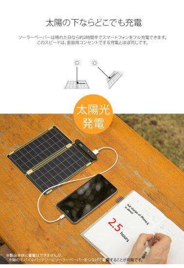 ※製品本体に蓄電はできませんが、市販のモバイルバッテリーにソーラーペーパーをつなげて蓄電することが可能です。