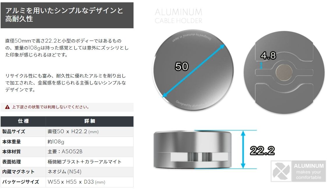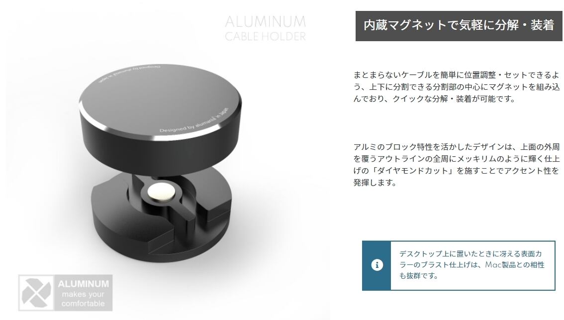 alumania アルマニア CABLE HOLDER by aluminum Billet ケーブルホルダー アルミの無垢材から削り出し ケーブルをまとめるのに最適 1909-CW01-SI 1909-CW01-BK
