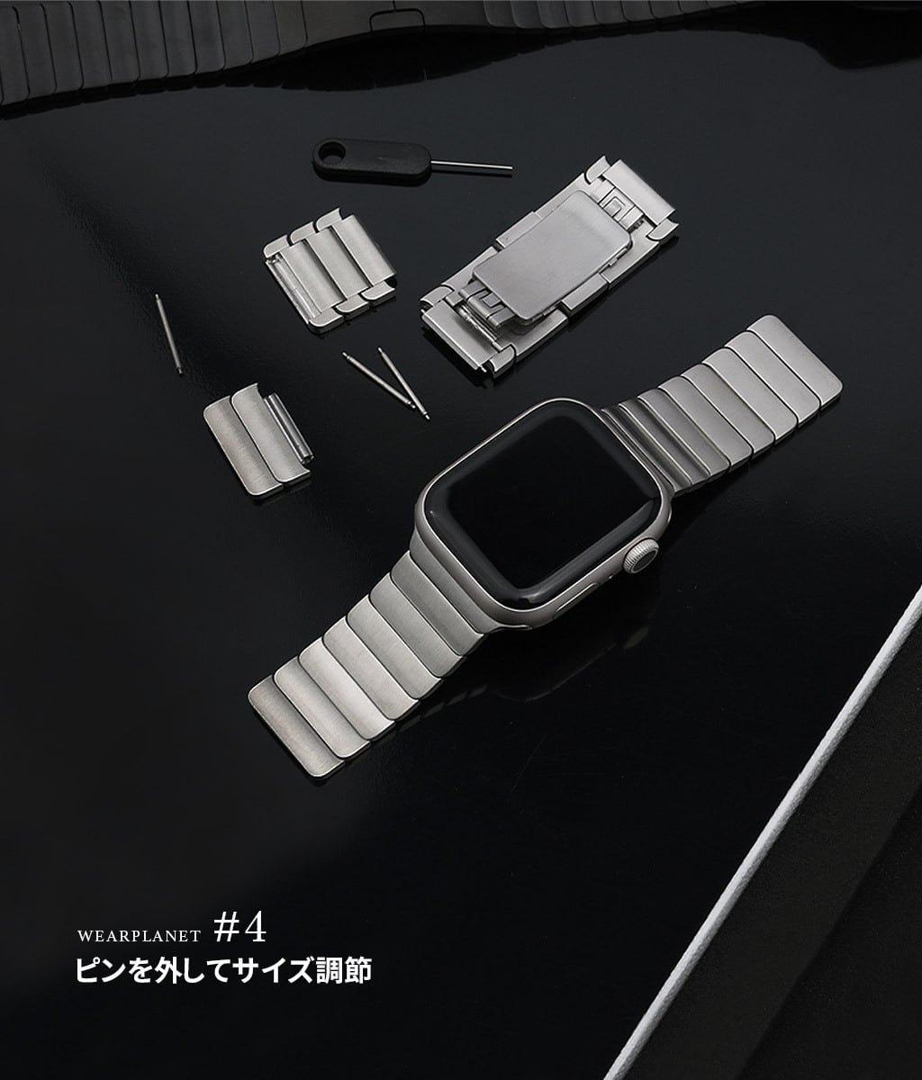WEARPLANET プレミアムメタルバンドは、高品質なサージカルステンレス素材を使用した、バックル一体型のApple Watch専用バンドです。