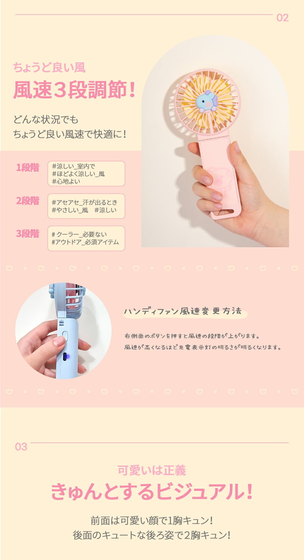 ・商品名:BT21 minini デュアルブレードハンディファン【公式ライセンス品】 ・タイプ:ポータブル扇風機