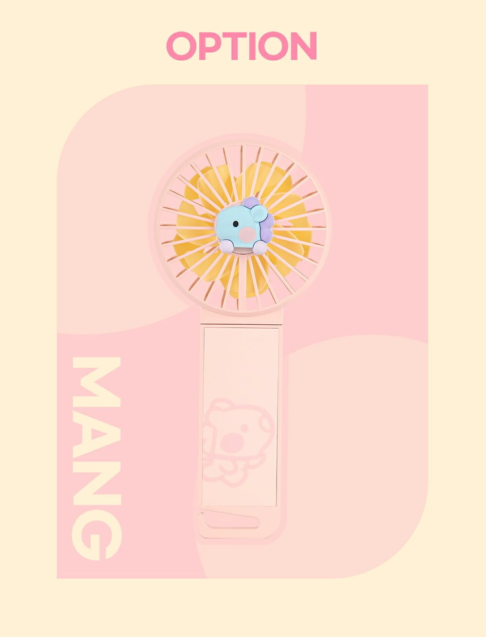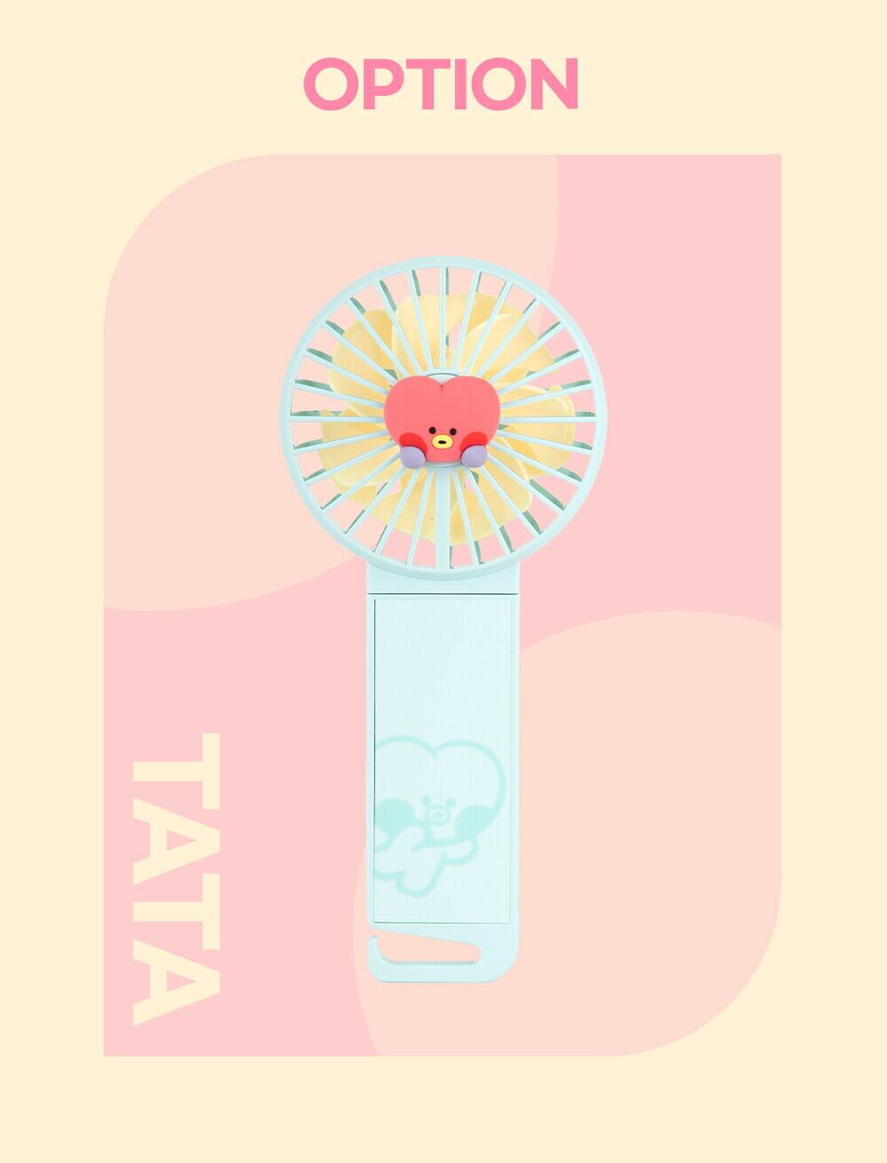 BT21「ミニハンディファン」は正面にBT21の可愛いキャラクターマスコットが付いた、可愛いストラップが付いたポータブル扇風機
