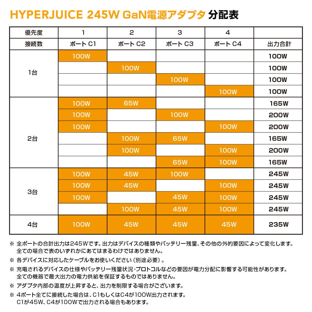 国内正規品 Hyper ハイパー HyperJuice 245W GaN USB-C 電源アダプタ GaNテクノロジー 小型 4台同時急速充電 HYPER++ HP-HJ-GAN245