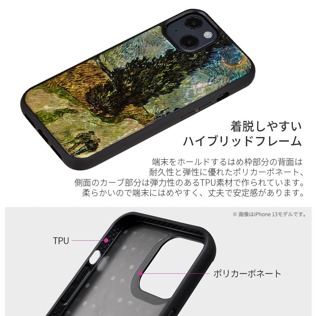 国内正規品 ikins アイキンス iPhone 14 / iPhone 14 Pro 天然貝ケース 名画シリーズ ゴッホ 夜のカフェテラス 星月夜 ひまわり I23572i14 I23573i14 I23577i14 I23588i14P I23589i14P I23593i14P
