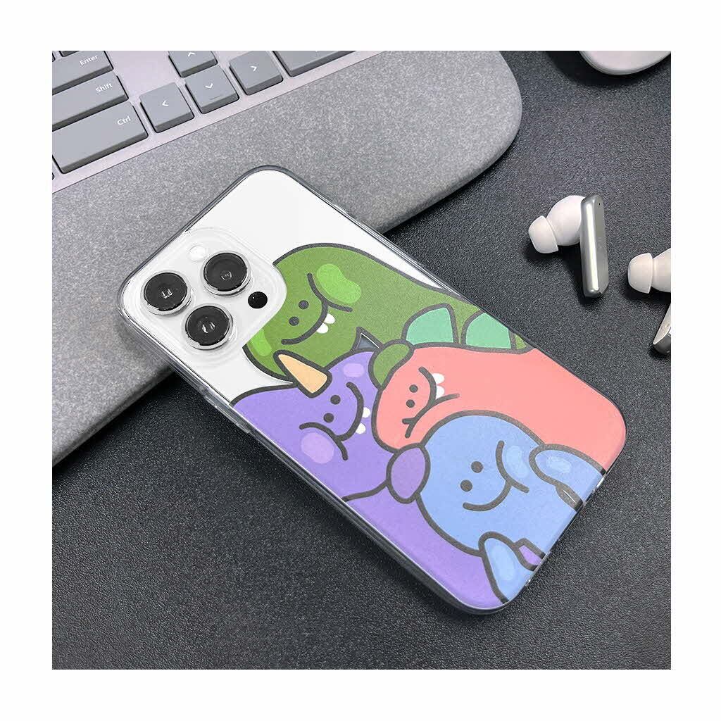ゆるカワなキャラクターのイラストがユニークで可愛いデザインのクリアケースです。