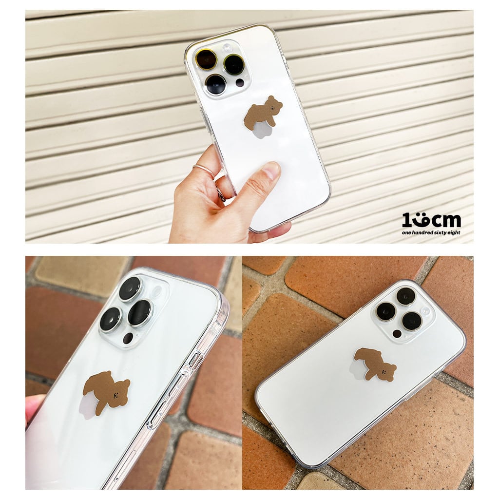 国内正規品 168cm iPhone 14 / iPhone 14 Pro ソフトクリアケース リンゴとブラウンベア リンゴとくまちゃん 透明TPUケースに可愛いイラストが入ったケース