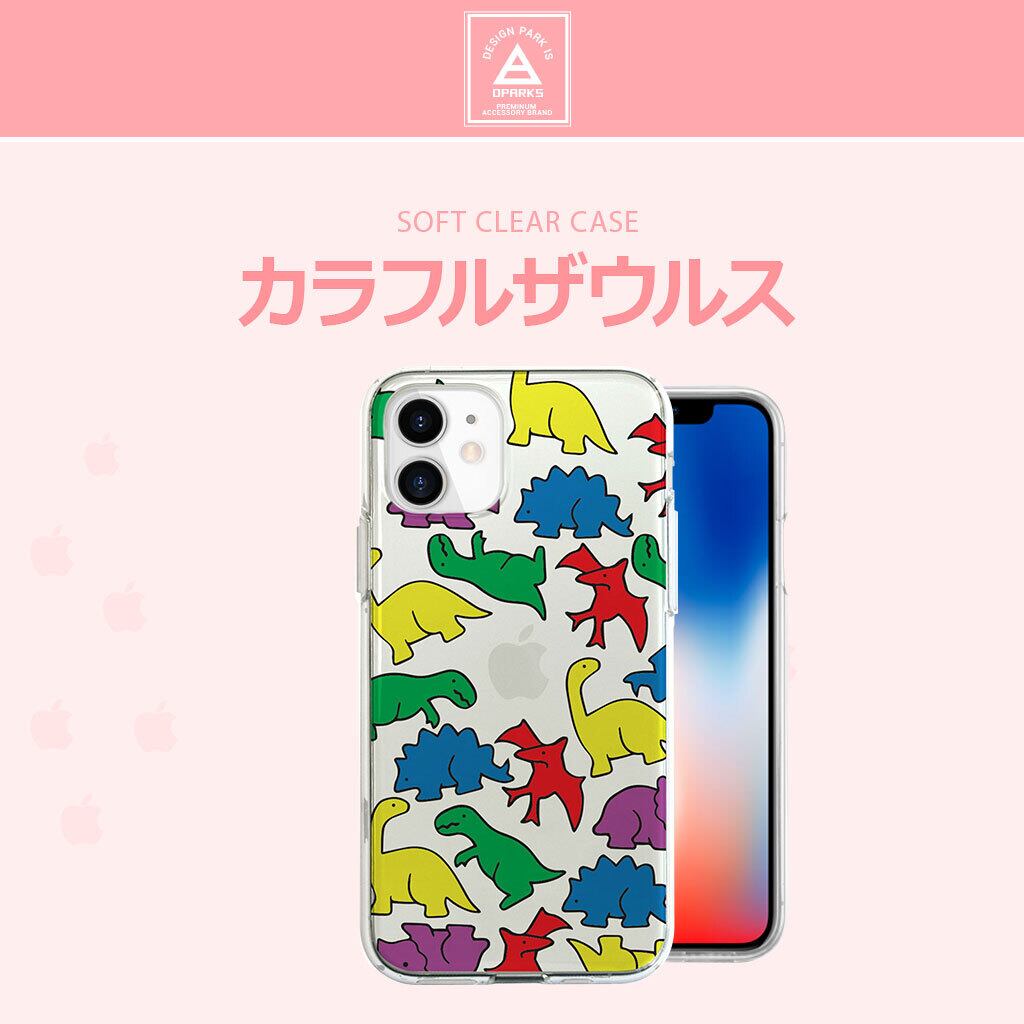 国内正規品 Dparks ディーパークス iPhone 14 / iPhone 14 Pro ソフトクリアケース カラフルザウルス 透明TPUケースに可愛いイラストが入ったケース