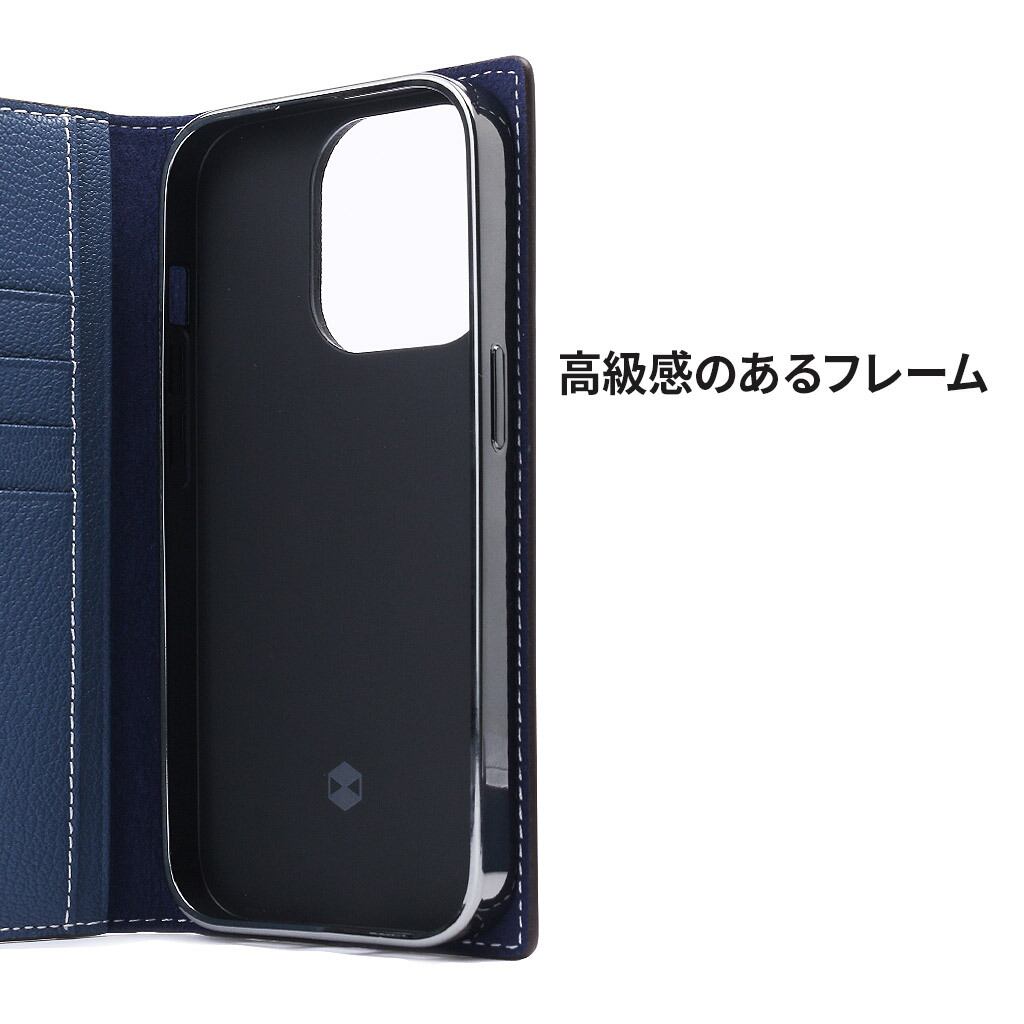 国内正規品 SLG Design iPhone 14 / iPhone 14 Pro 手帳型 Hybrid Grain Leather Diary Case 牛革にゴートレザー状のエンボスを施し