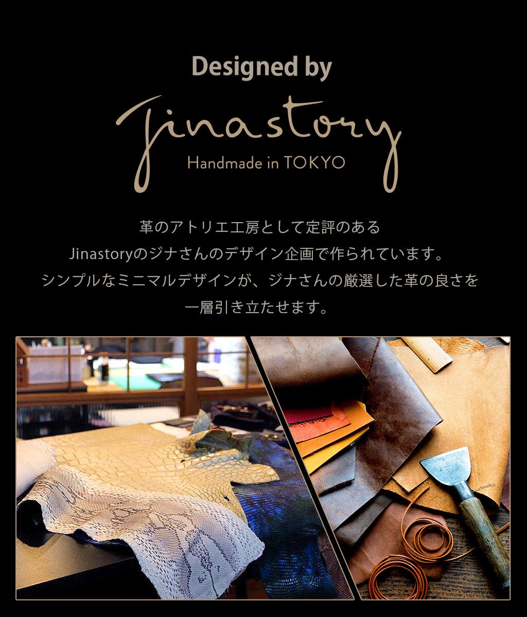 革のアトリエ工房として定評のあるJinastory・ジナさんが企画・監修を手掛けています。シンプルでミニマルなデザインが、厳選した革の素材の風合い良さを引き立たてせます。