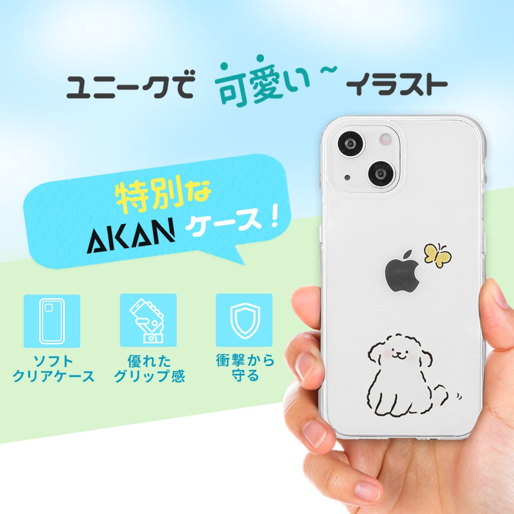 国内正規品 AKAN エイカン iPhone 14 / iPhone 14 Pro ソフトクリアケース ワンちゃん 透明TPUケースに可愛いイラスト AK23510i14 AK23511i14 AK23544i14P AK23545i14P