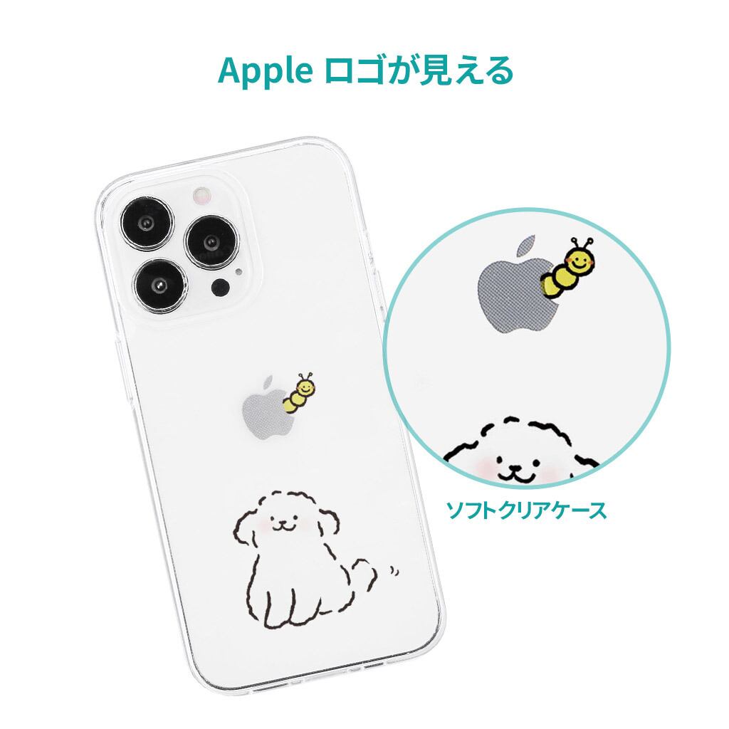 クリアケースなのでiPhone背面のappleのロゴが見えます。イラストと一体化することによってロゴが生かされるデザインです。
