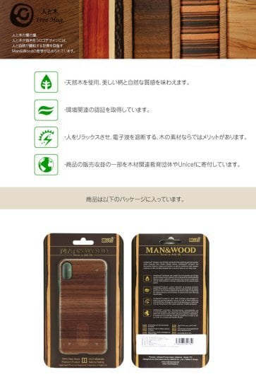 Man&Woodは特殊技術で薄くした天然木をケースに密着させています。