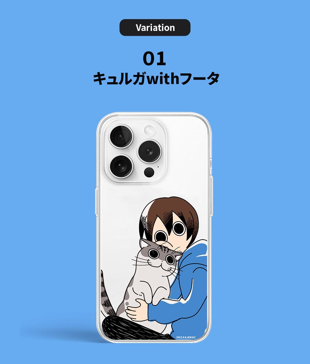 abbi FRIENDS(アビィフレンズ)の「夜は猫といっしょ ソフトクリアケース」は、柔軟なクリア素材に愛らしいキャラクターのキュルガたちが描かれたiPhone用ケースです。