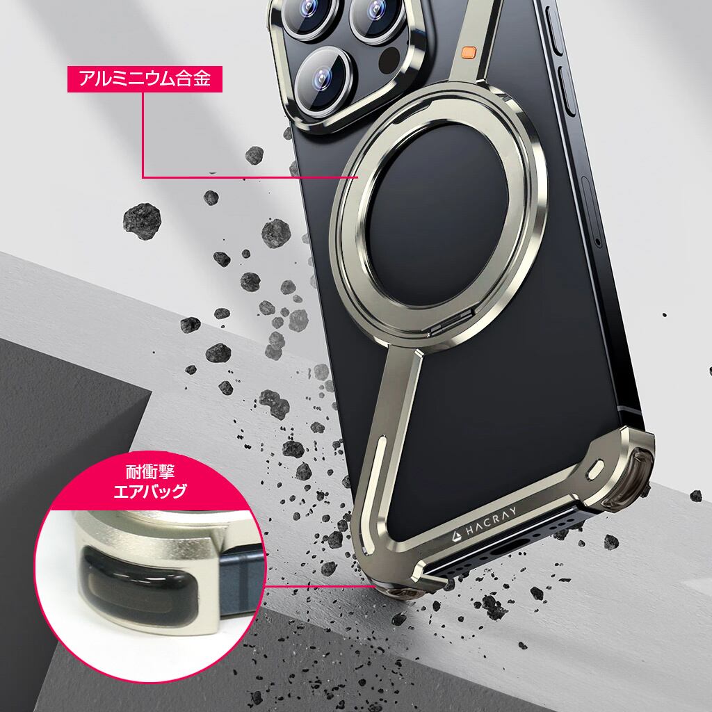 Hacray 360 RingStandケースは、360°回転するMagSafe対応リングスタンドを搭載したiPhoneケースです。iPhoneの本来のデザインを活かすベゼルレスデザインで、耐衝撃性と機能性を兼ね備えています。